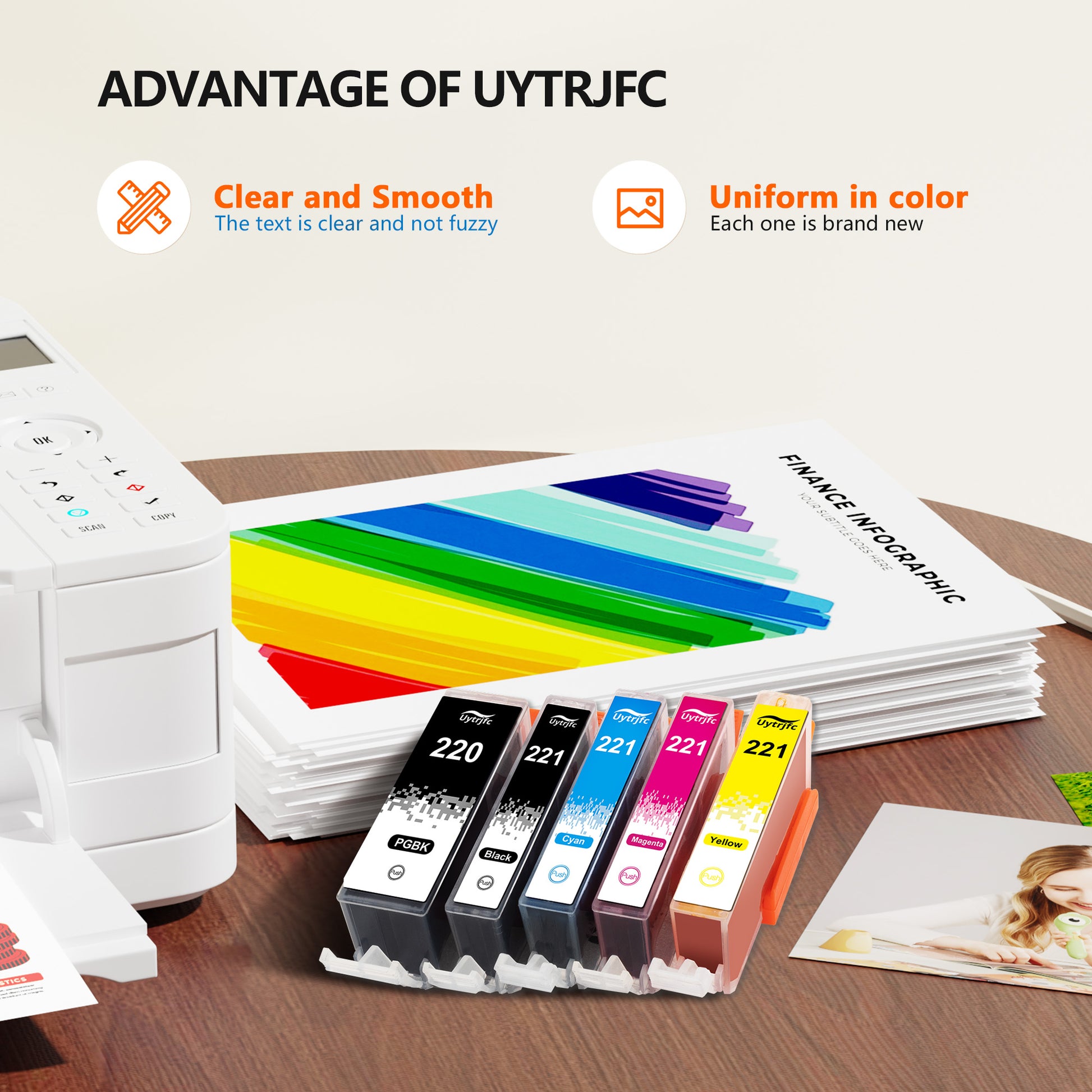 PGI-220 CLI-221 ink compatible replacement for Canon 220 221 PGI220 CLI221 ink cartridges,5 Color (PGBK,Black,Cyan,Magenta,Yellow)