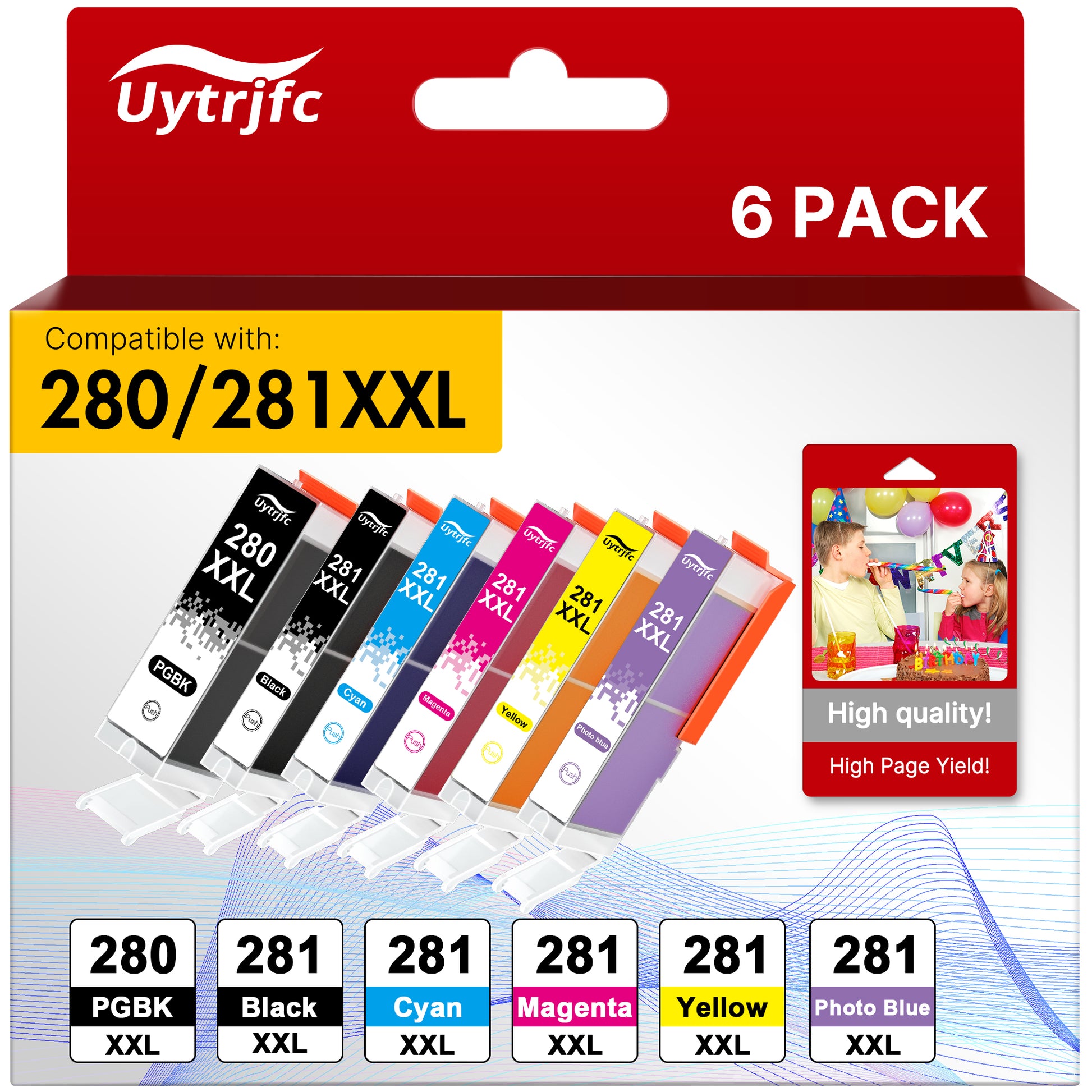 PGI-280XXL CLI-281XXL ink compatible replacement for Canon 280 281 PGI280 XXL CLI281 XXL ink cartridges, 6 Color (PGBK,Black,Cyan,Magenta,Yellow,Photo Blue)